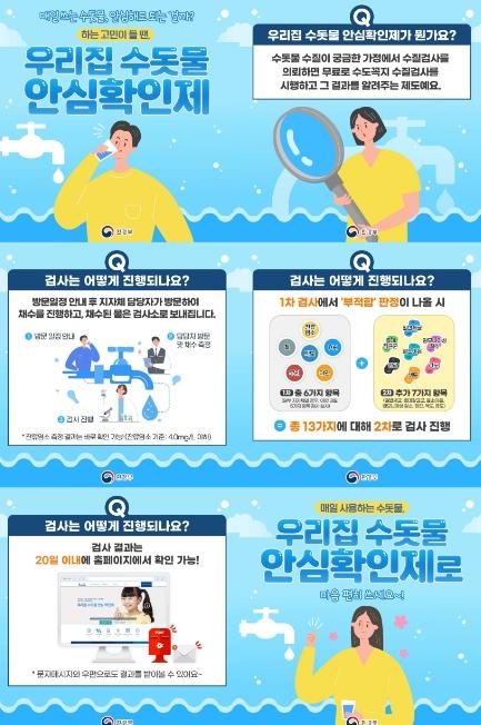 구리시가 2019년부터 운영 중인 『우리집 수돗물 안심확인제』는 홈페이지 또는 전화로 신청을 받아 토평정수장 실험실에서 무료로 자체검사를 실시하고, 신청일로부터 20일 이내 검사 결과를 홈페이지와 우편물 발송을 통해 알려 수돗물 불신을 해소시켜 주는 제도다.