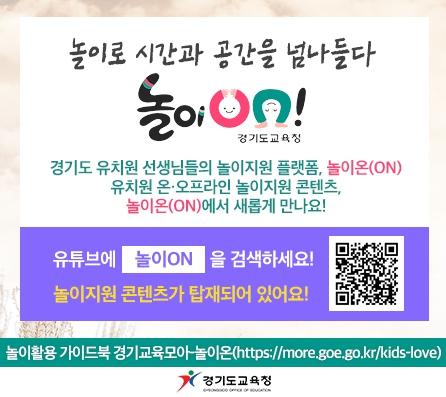 최근 코로나19 감염병으로 인해 시작된 유치원 원격수업 지원을 위해 놀이지원 누리집 ‘놀이온(ON)’을 운영하고 있다. 이를 원격수업을 통한 가정과의 연계 활동 지원은 물론 미래형 교육과정 운영 지원에까지 적극 활용하고 있는 것이다.
