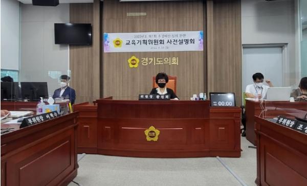 [한국뉴스타임=편집국] 경기도의회 교육기획위원회(위원장 황진희, 더불어민주당/부천4)는 19일 도의회 상임위 회의실에서 제1회 경기도교육비특별회계 추경예산안에 대한 사전 설명을 받는 시간을 가졌다.