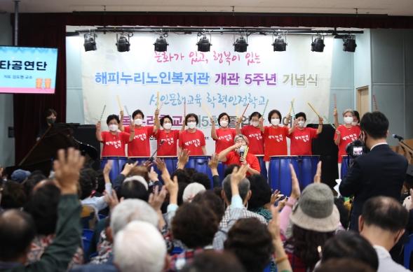 해피누리노인복지관(관장 이상호)은 지난 17일 복지관 3층 강당에서 개관 5주년 기념식 및 제5회 행복누리학교 졸업장 수여식을 가졌다.