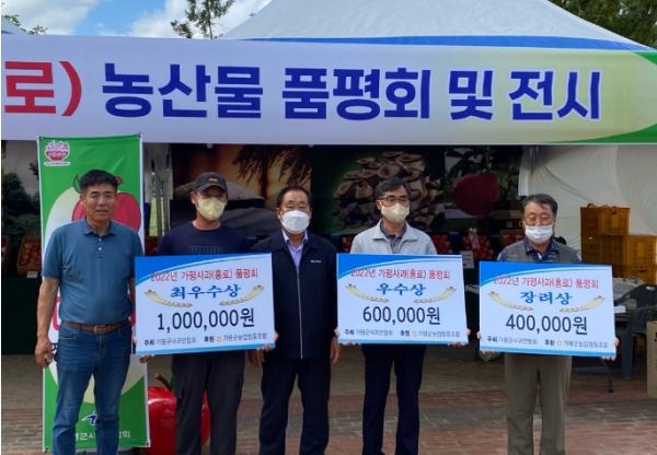 사과(홍로) 부문 시상은 9월 19일 자라섬에서 실시했으며, 포도(캠벨얼리) 부분 시상은 10월 25일 제32회 가평 농업인 한마당 큰잔치에서 진행될 예정이다. 사과 부문 우수상은 이필주(가평읍) 농업인, 장려상은 이해근(가평읍) 농업인, 포도 부문은 우수상 김재자(상면) 농업인, 장려상 조경인(조종면) 농업인, 윤용현(북면)이 수상할 예정이다.