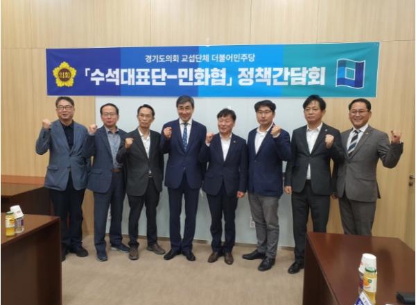 [한국뉴스타임=편집국] 경기도의회 교섭단체 더불어민주당(대표의원 남종섭, 용인3)은 22일 제1정담회실에서 민족화해협력범국민협의회(대표상임의장 이종걸) 관계자와 정담회를 개최했다.
