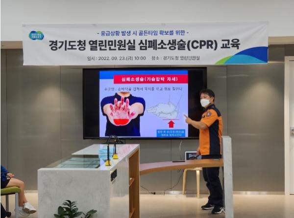 [한국뉴스타임=편집국] 경기도는 23일 경기도청 열린민원실 전 직원을 대상으로 심폐소생술과 응급처치 교육훈련을 실시했다.