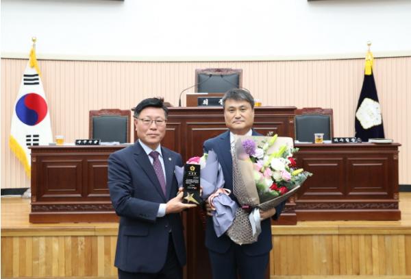 구리시의회(의장 박석윤)는 1일 오전 본회의장에서 제7회 경기동부권 시군의장협의회 의정활동 평가에서 최우수 의원으로 선정된 김광수 의원에 대한 표창 전달식을 가졌다.
