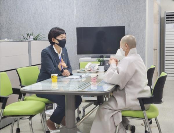 [한국뉴스타임=편집국] 경기도의회 이채명 의원(더불어민주당, 안양6)이 지난 27일 경기도의회 안양상담소에서 호계동 노인종합복지회관 관장(혜철)과 함께 주민 생활의 안전과 편의를 위한 지역구 호계동 노인종합복지회관의 쾌적한 환경개선 관련으로 정담회 하는 자리를 가졌다.
