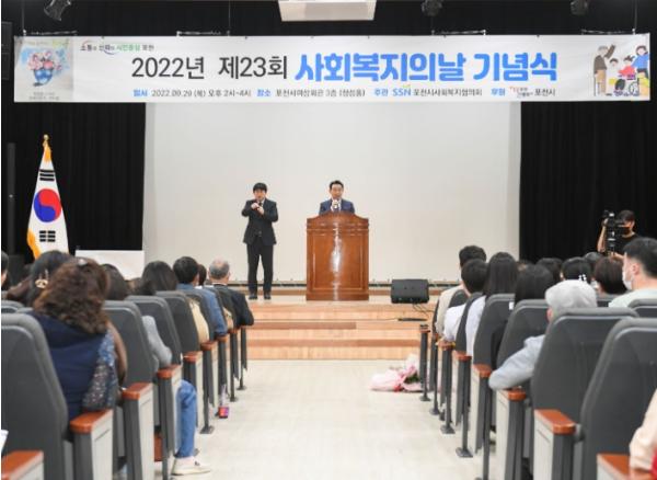 [한국뉴스타임=편집국] 포천시는 포천시사회복지협의회와 함께 사회복지의 날을 맞아 여성회관 청성홀에서 ‘제23회 사회복지의 날’ 기념식을 개최했다.