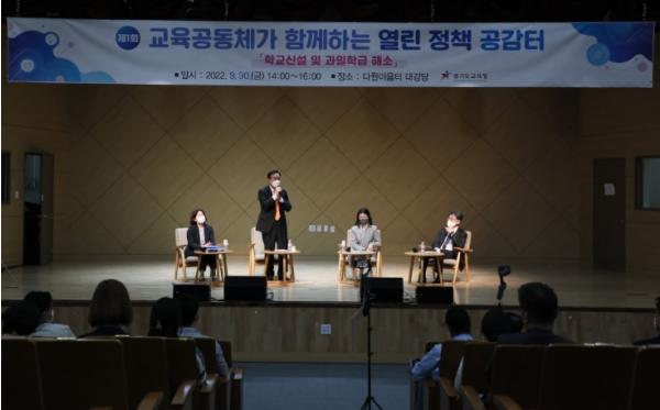 [한국뉴스타임=편집국] 경기도교육청이 30일, 화성 다원이음터에서 ‘학교 신설ㆍ과밀학급 해소’ 주제로 정책 토론회를 열었다.