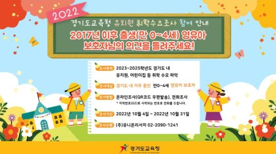 [한국뉴스타임=편집국] 경기도교육청은 4일부터 31일까지 2022년 유치원 취학 수요조사를 진행한다고 밝혔다.