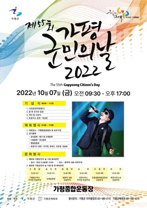 풍성한 결실의 계절을 맞이하여 제55회 가평군민의 날 행사를 개최하고자 합니다.