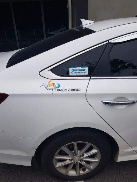 [한국뉴스타임=편집국] 가평군은 오는 10월부터 민선8기 군정 슬로건 홍보를 위해 관내 택시업체 155대에 슬로건이 새겨진 차량부착용 스티커를 부착한다.
