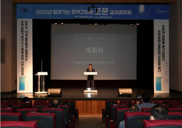 결과공유회는 지난 5월부터 8월까지 포천문화재단이 포천시 14개 읍면동을 순회하며 시민들의 문화예술 관련 욕구와 희망사항을 경청했던 찾아가는 정책간담회 ‘포문’ 운영 결과를 공유하는 자리로 마련했다.