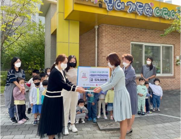 [한국뉴스타임=편집국] 남양주시 별내동에 소재한 시립꿈이가득한어린이집은 어린이집 원아들과 부모, 교사들이 함께 참여한 ‘시장놀이’ 행사 수익금 524,000원을 지난달 29일 남양주시복지재단에 전달했다.