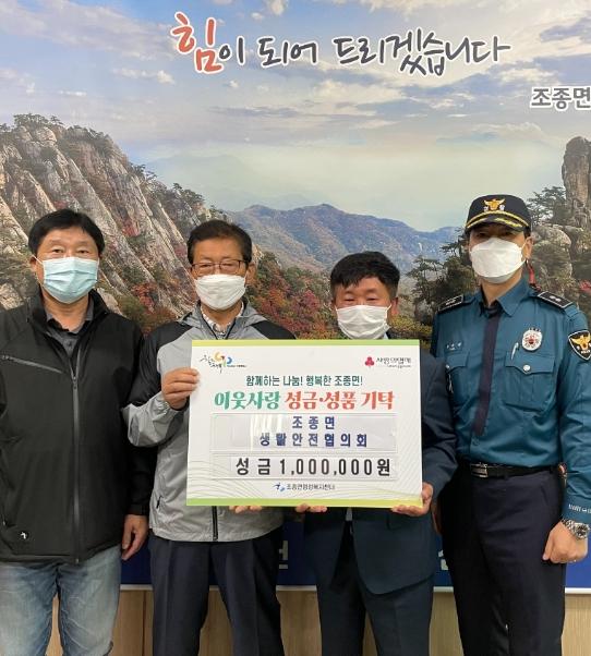 이에, 박영선 조종면장은 “항상 지역사회를 위해 애써주시는 생활안전협의회에 깊은 감사를 드린다”며 “기탁해주신 성금은 조종면에 소외된 이웃들이 온정의 손길을 느낄 수 있도록 소중한 마음과 함께 전달할 것”이라고 말했다.
