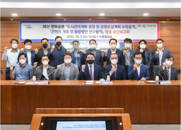 38선 평화공원 조성사업은 한국전쟁 격전지로 역사·상징성을 간직한 43번 국도변 영중 38선 일대를 역사·문화·관광기반의 역사공원으로 조성하고자 추진하고 있는 사업이다. 두 연구 용역을 연계·협력하고 다양한 콘텐츠와 활용방안을 반영해 내실있는 공원 조성을 계획한다.