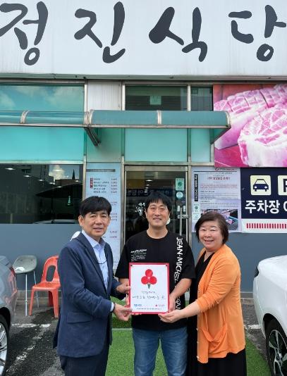 [한국뉴스타임=편집국] 구리시는 10월 5일 교문1동 소재 정진식당과 신내동 할머니 보신명가에서 경기북부 사랑의열매‘착한가게’현판식을 가졌다.