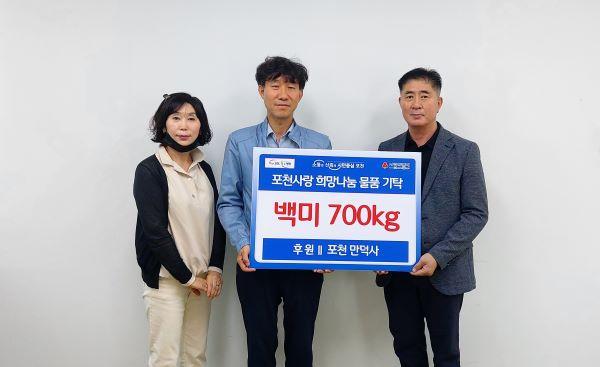 [한국뉴스타임=편집국] 포천시 대한불교 사찰 만덕사는 지난 6일 포천시 취약계층을 위한 백미 700kg(10kg 70포)을 경기사회복지공동모금회를 통해 포천시에 기탁했다.