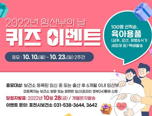 [한국뉴스타임=편집국] 포천시는 10월 10일 ‘제17회 임산부의 날’을 맞아 임산부를 위한 퀴즈이벤트를 개최한다.