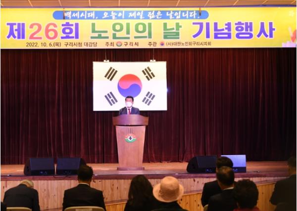 [한국뉴스타임=편집국] 구리시는 6일 구리시청 대강당에서 대한민국과 구리시 발전을 위해 중추적 역할을 해오신 어르신들의 노고에 감사드리는 마음으로 ‘제26회 노인의 날’ 기념행사를 개최했다.