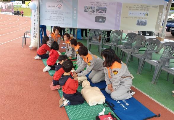 체험 프로그램은 ▲소방장비 전시 ▲소화기 사용법 체험 ▲심폐소생술 및 AED사용법 ▲주택용 소방시설 설치 홍보 ▲응급처치 교육·체험 등 다양한 활동을 운영했다.