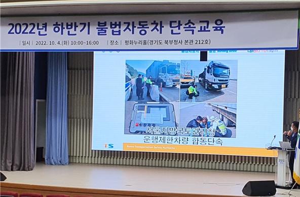 더욱 원활한 단속을 위해 경기도와 한국교통안전공단 경기지역본부는 지난 4일과 7일 이틀간 도내 시군 담당 공무원 약 50여 명을 대상으로 ‘2022 하반기 불법 자동차 단속업무 담당자 역량 강화 교육’을 실시했다.