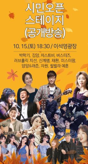 시 관계자는 “10월 문화의 달을 맞아 특집 공개방송을 통해 TV에서만 보던 미스트롯과 히든싱어 출연진을 집 근처 광장에서 만나볼 수 있도록 준비했으니 많은 관심 부탁드린다.”라고 밝혔다.