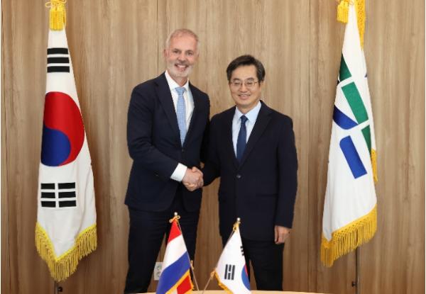 김동연 지사는 11일 집무실에서 폴 베르하겐(Paul Verhagen) 에이에스엠 인터내셔널(ASMI) 재무총괄이사(CFO)와 면담을 진행하고, 도내 투자 확대를 요청했다. 또한 외국인투자 증진과 활성화를 위한 제도에 대해 적극적인 지원 의지를 표명했다. 에이에스엠 인터내셔널(ASMI)은 반도체 증착장비 제조 부문 세계 10위권인 네덜란드의 대표적 글로벌기업이다.