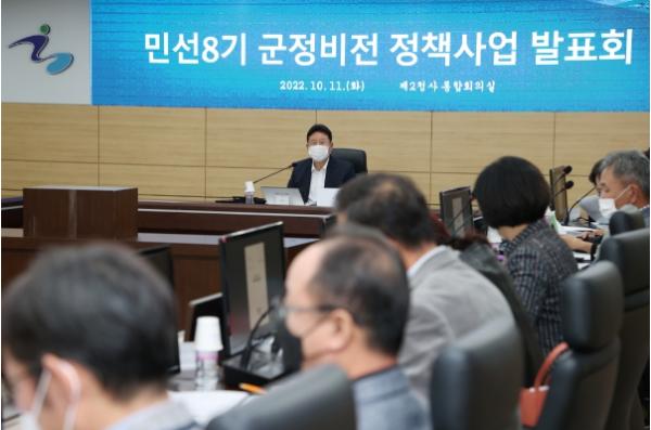 [한국뉴스타임=편집국] 서태원 가평군수는 10월 11일 민선8기 군정 비전인 “자연을 경제로 꽃피우는 도시, 가평” 실현을 위하여 군수를 비롯한 40여명의 과장급 이상 모든 간부가 한자리에 모여 각 부서에서 발굴한 정책을 발표하고 평가하는 자리를 가졌다.
