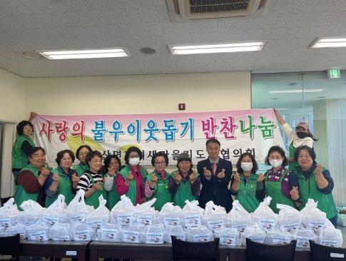 아침 일찍부터 각종 반찬을 만들기 위해 가산면 새마을 부녀회장들 15여 명이 모여 숙주나물무침, 오징어 오이무침, 메추리알 조림, 제육볶음을 만들기 위해 분주하게 움직였다. 만든 밑반찬 46꾸러미는 부녀회장들이 관내 홀몸 어르신 가구에 직접 방문해 따뜻한 마음과 함께 전달해 드렸다.