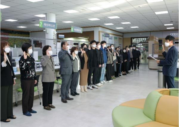 군은 친절교육 시 근무 시작 전, 종합민원실 근무자의 “친절선서문”을 낭독 및 선서를 통해 군민중심의 민원서비스 제공의 마음가짐을 다시 한 번 되새길 수 있도록 했다.