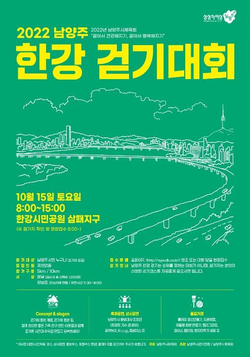 [한국뉴스타임=편집국] 남양주시체육회가 주최하고 남양주시체육회와 남양주시걷기연맹이 공동 주관하는 ‘2022 남양주 한강 걷기 대회’가 오는 15일 한강시민공원 삼패지구 일원에서 3년 만에 개최된다.