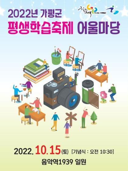 [한국뉴스타임=편집국] 가평군은 2022. 10. 15.(토) 음악역1939 뮤직홀 및 야외공연장 일원에서 4년만에 평생학습축제 어울마당을 개최한다고 밝혔다.