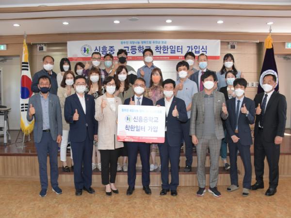이날 가입식은 최용덕 동두천시장 및 경기북부사랑의열매 관계자, 학교 교직원 등 30여명 참석한 가운에, 지역사회를 위해 따뜻한 나눔 문화에 동참한 신흥 중학교와 고등학교를 착한일터 제71호와 제72호로 선정했다.
