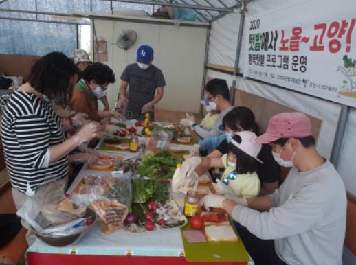 이 날 고양시 행복텃밭 중 고양대곡텃밭주말농장 분양에 참여한 40여 가족이 참여해 각자 텃밭에 심었던 쌈채소를 수확해 텃밭 채소를 이용한 샌드위치 만들기 활동을 벌였다.