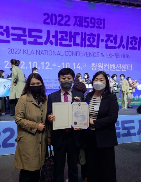[한국뉴스타임=편집국] 경기도구리남양주교육지원청 마석중학교는 문화체육관광부가 주관한 '2022년도 전국 도서관 운영평가'에서 학교도서관 부문 우수도서관으로 선정되어 2022. 10. 12(수) 경남 창원컨벤션센터에서 열린 제59회 전국도서관대회 개회식에서 부총리 겸 교육부장관상을 수상했다고 13일 밝혔다.
