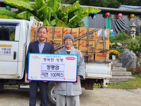 [한국뉴스타임=편집국] 청평면 청평암은 지난 10월 13일, 라면 100박스를 청평면 행정복지센터에 기탁했다.