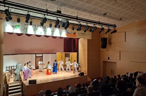 이번 교육은 보행 중 교통사고 예방, 감염병 예방 등 노년기 시민의 생활 안전을 주제로 진행됐으며, 기존의 강의식 교육과는 다르게 친근한 음악과 흥미로운 스토리로 기획된 악극 형식으로 참석자들의 흥미와 집중도를 높였다.
