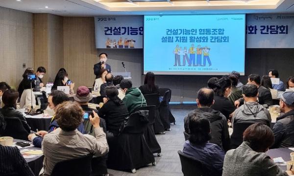 [한국뉴스타임=편집국] 경기도가 건설기능인 자생력 강화를 위한 협동조합 설립을 지원하는 가운데 경기도일자리재단이 지난 14일 수원컨벤션센터에서 건설기능인 협동조합 설립지원 활성화 간담회를 열었다.