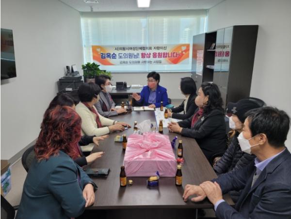 [한국뉴스타임=편집국] 경기도의회 교육행정위원회 김옥순(더불어민주당, 비례) 의원은 18일 의회 사무실에서 의왕시 여성단체 활동 활성화를 위한 정담회를 개최했다.