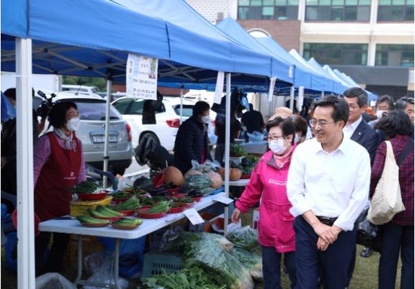 김동연 지사는 이 자리에서 “경기도청이 이사 간 뒤로 이 지역 상권이 많이 힘든데 활성화를 위한 노력이 필요하다고 생각했다”면서 “그래서 한번 와 보고 싶었다. (와서 보니)농산물 직거래 장터는 도민과 농민 모두에게 좋을 것 같다”고 말했다.