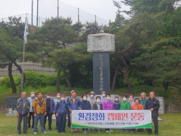 [KNT한국뉴스타임] 대한민국전몰군경유족회 가평군지회(지회장 조영호) 회원 20명은 2일 오전 가평읍 소재 가평의병 3.1항일운동 기념비에서 예초작업과 함께 쓰레기를 줍는 등 환경정화 활동을 펼쳤다.