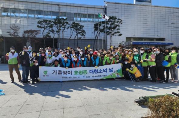 ‘호평동 대청소의 날’은 개별적으로 환경 정화 활동을 펼치던 사회단체가 한자리에 모여 대청소를 실시하는 날로, 이번 행사에는 호평동 통장협의회, 새마을부녀회, 바르게살기협의회, 자율방재단, 어머니방범대, 지역사회보장협의체 등 12개 단체가 참여했다.