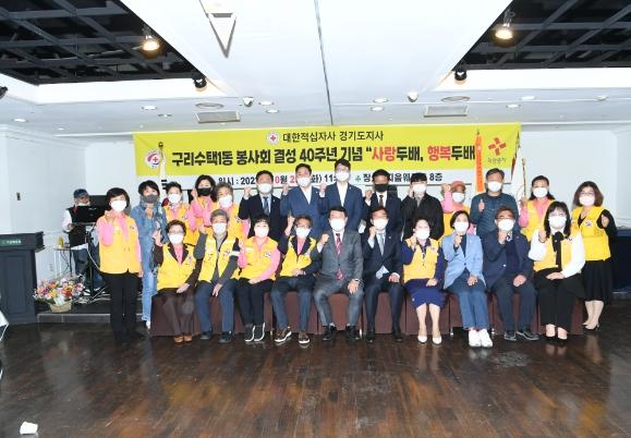 백경현 구리시장은 “구리시 승격일보다 먼저 창립된 수택1동 적십자봉사회 결성 40주년을 진심으로 축하하며, 코로나19 감염병 확산 방지 및 복지사각지대에 놓인 어려운 취약계층 돌봄에도 최선을 다해 봉사하시는 회원님들의 노고에 감사하고 앞으로도 지역사회에서 적극적인 활동을 펼쳐주시길 바란다.”고 전했다.