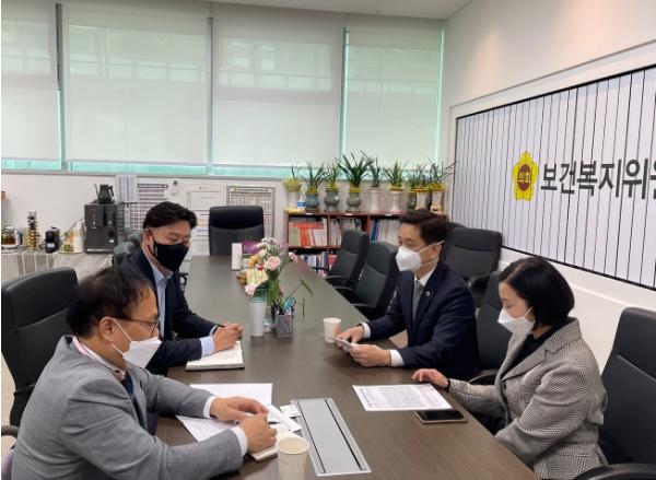 최종현 경기도의회 보건복지위원장(더불어민주당, 수원7)은 26일 경기도의회 보건복지위원장실에서 박재용 경기도의원(더불어민주당), 수원시의사회 김지훈 회장, 공연식 사무국장과 도민 건강권 보장을 위한 공공의료 확대 를 주제로 정담회를 가졌다.