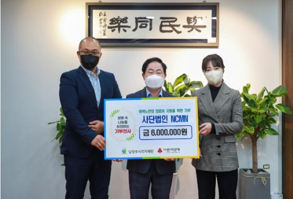 ㈔NCMN(대표 김미진)은 27일 남양주시 내 취약계층 어르신의 의료비를 지원하기 위해 후원금 600만 원을 남양주시복지재단(대표이사 심우만)에 전달했다.