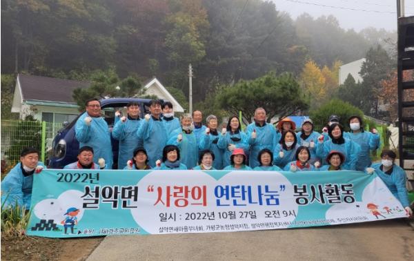 [한국뉴스타임=편집국] 가평군농협 설악지점 및 설악면 지역사회보장협의체·주민자치위원회·부녀회 등 총 26명은 재단법인 경춘공원묘원이 후원한 연탄 3,000장(10개 가구분) 중 600장을 독거 노인 2개 가구에 각 300장씩 전달하는 봉사를 실시했다.