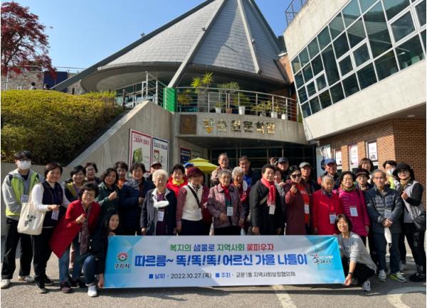 [한국뉴스타임=편집국] 구리시는 27일 교문1동 지역사회보장협의체 주관으로 독거어르신 20명과 봉사자 20명이 함께하는 가을나들이를 추진했다.