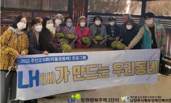 이번 기부는 지역사회 공동체 형성을 지원하는 마을공동체 프로그램 ‘LH(내)가 만드는 우리동네’의 일환으로 진행됐으며, 단지 내 노인회 6명의 어르신들이 정성껏 키운 콩나물을 지역 내 장애인과 남양주시 북부장애인복지관으로 전달했다.