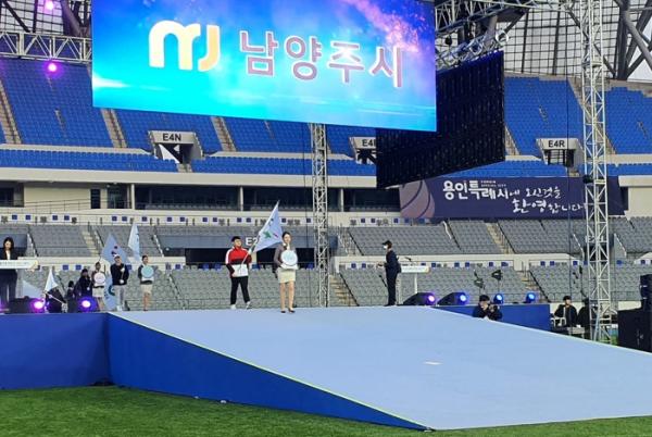 [한국뉴스타임=편집국] 이석범 남양주시 부시장은 지난 28일 용인미르스타디움에서 열린 ‘제33회 경기도생활체육대축전 2022 용인’ 개회식에 참석해 남양주시 대표로 대회에 참가한 선수들을 응원했다.