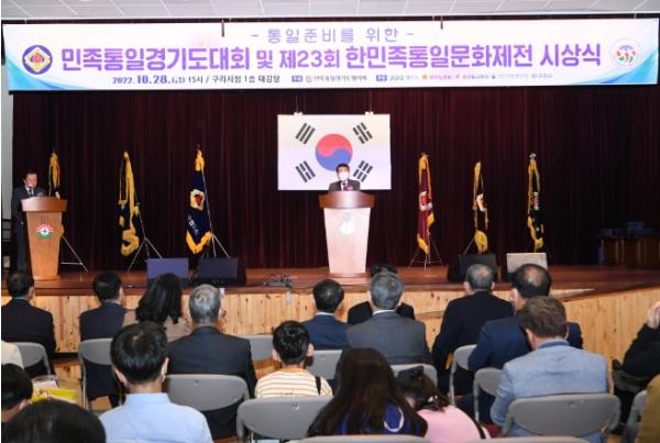 [한국뉴스타임=편집국] 구리시는 28일 민족통일 경기도협의회가 주최하고 민족통일 구리시협의회가 주관하는 ‘2022 민족통일 경기도대회 및 제53회 한민족통일문화제전 시상식’을 개최했다고 밝혔다.