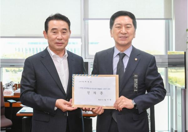 [한국뉴스타임=편집국] 백영현 포천시장은 31일 최춘식 국회의원, 경기도의회 윤충식·김성남 의원과 함께 김기현(국회의원, 울산 남구을) 국방위원회 위원을 만나 건의문을 전달했다.